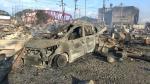 観光名所なのですが、その面影は全くありません。 今も白い煙や炎があがっていて、消火活動がずっと続いています。 街中には、自分の家に戻り、掃除…