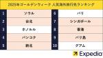 エクスペディアは、2025年のゴールデンウィークにおける人気の海外旅行先ランキング、人気上昇ランキング、そして混雑予想日を発表した。アジアの都市が上位…