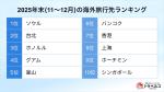 ランキング上位はソウル、台北、ホノルル。グアムやホーチミンの人気も上昇中! 「年末(11〜12月)の海外旅行先人気ランキング」では、…