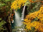 深い渓谷に流れ落ちる真名井の滝など、いつ訪れても印象に残る観光名所ですね。 例年11月中旬から下旬にかけて渓谷内の木々が赤く色づきます。渓谷にかかる御橋…